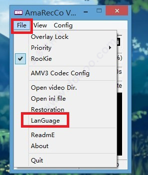 2、安装编码器后可直接运行软件,并选择file任务栏内的language选项来打开语言窗口。