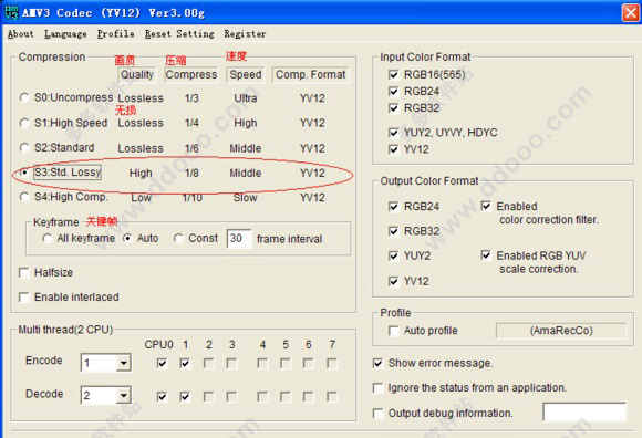 3、之后需要进行编码器设置,在编码器设置窗口中照图里选择S3即可,其他不用改动,若是出现视频带有水印的现象请查看是否使用过授权码。