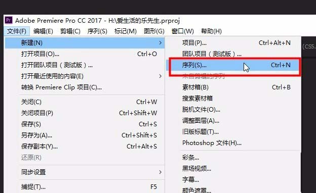1、打开PR ,文件-新建-序列