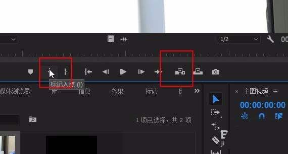 2、设置视频素材的标记入点和标记出点-点击插入