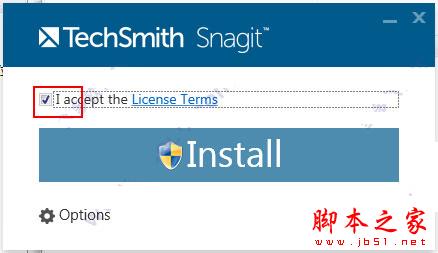 2、首先我们正确安装好snagit 2018原程序,勾选“i accept the license terms”;