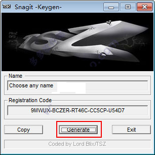 9、这里打开软件包中的注册机,点击“generate”生成注册码,将注册码复制到snagit 2018软件界面下激活;