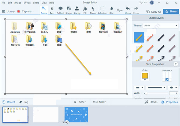 techsmith snagit 2018(简称为snagit 2018或snagit 18)是一款目前互联网上最简单,而又强大的屏幕捕捉软件,新版本不仅可以轻松捕捉电脑的屏幕,而且支持对捕捉的图像和视频进行编辑操作,用户可以对其添加文本框,线条,移动元素等操作。另外用户还可以对处理好的视频或图像直接发送到电子邮件,博客等,是你图像和视频录制最好的帮手。snagit 2018目前支持图像保存为BMP、PCX、TIF、GIF或JPEG格式,支持视频保存为avi,mp4等格式。