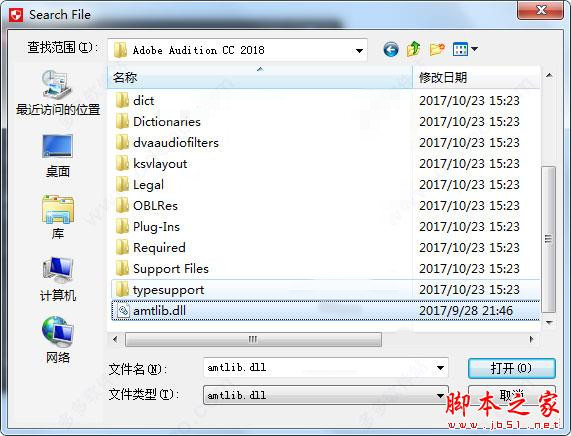3、找到安装目录下的“amtlib.dll”,点击打开即可,默认安装目录为"C:\Program Files\Adobe\Adobe Audition CC 2018"