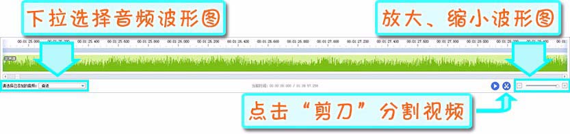 1、首先在时间轴的左下角下拉选择音乐,波形图就会出现啦,然后,时间轴的右下角可以放大/缩小波形图,波形图放到最大可以精确到帧。接下来,就可以根据波形图添加、设计字幕啦。