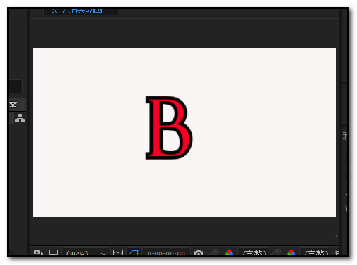 2、CTRL+T选取文字工具,键入目标文字,在本例中,演示操作方法,就简单键入一个“B”字。文字大小设置为130像素,红色填充,黑色描边。