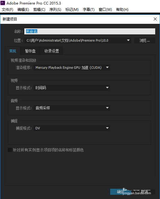 1、双击Adobe Premiere Pro CC 2015快捷图标,打开软件,新建一个项目文件。