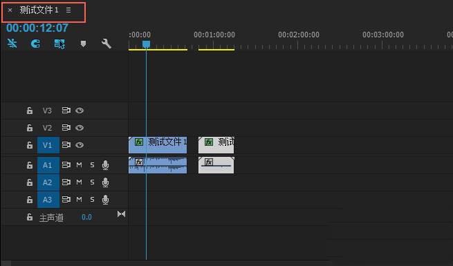 3、创建时间轴,将所要的文件拖动到时间序列上。本文以“测试文件1”为模板建立时间序列。