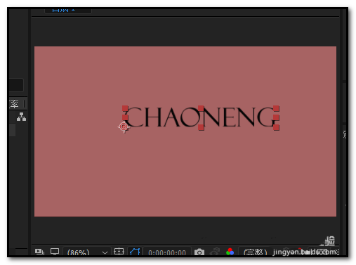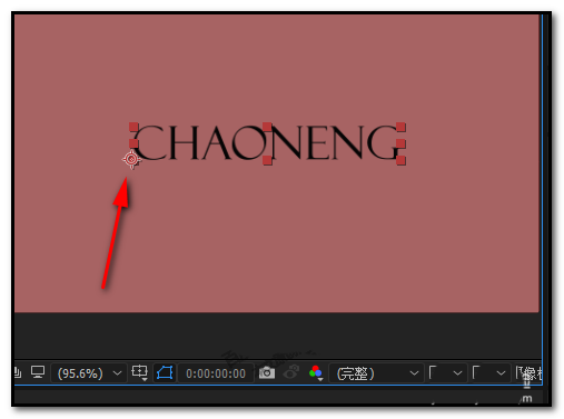 3、这个中心点,我们是可以移动的。按Y键,鼠标点住这个小圆圈,点住这个小圆圈,移动目标位置。比如,文字的中间位置。