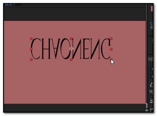 4、然后,鼠标点住文字任意一个方块,操作缩放文字。比如,鼠标点住右上角的方块,向下拖,可以把文字给翻转过来。