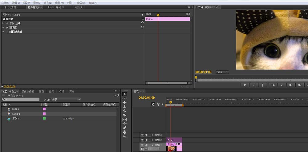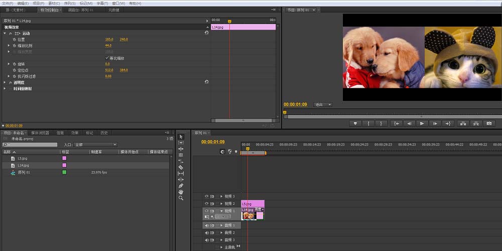2、导入素材图片,并且将素材文件插入到视频轨道。