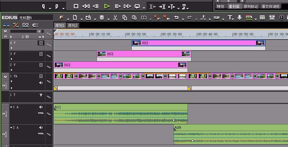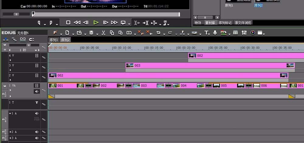 1、默认的edius是一个视频轨道、一个音视频轨道以及4个音频轨道。