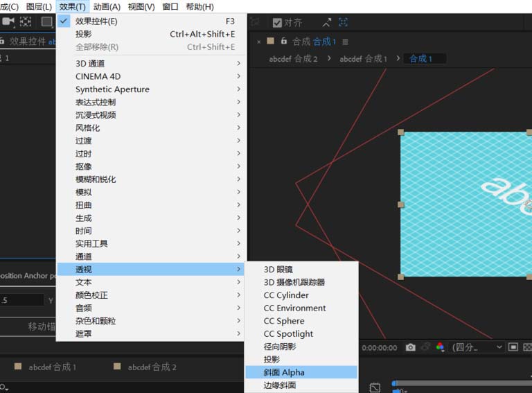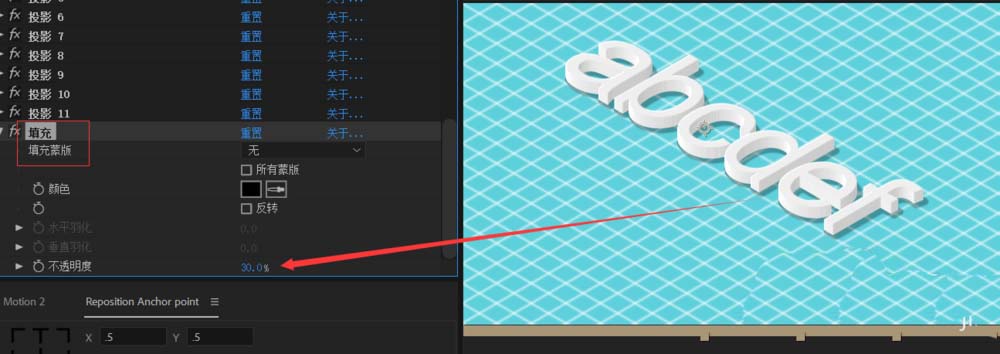 14、为底层合成添加填充效果后设置透明度即可完成整体效果