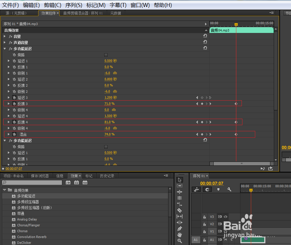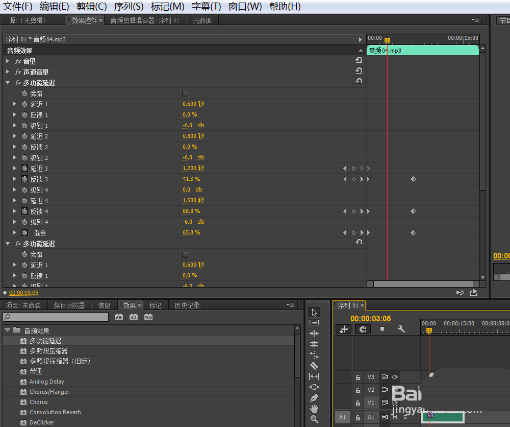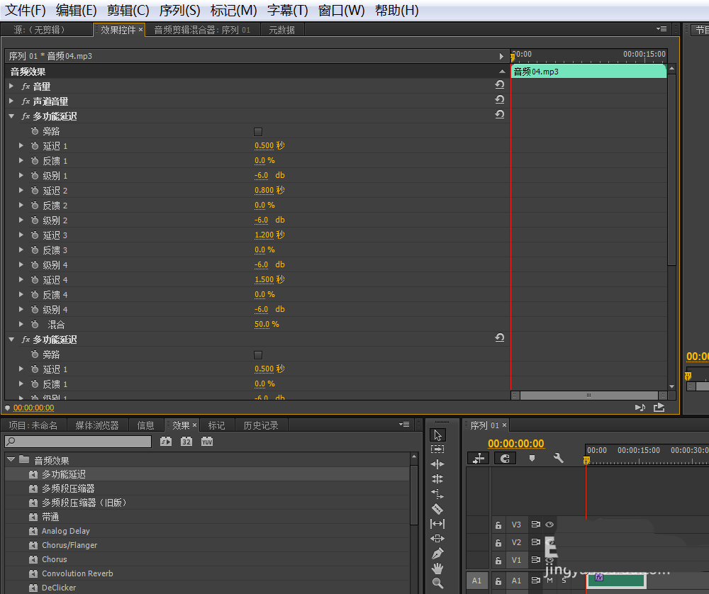 4、给素材添加多功能延迟效果。