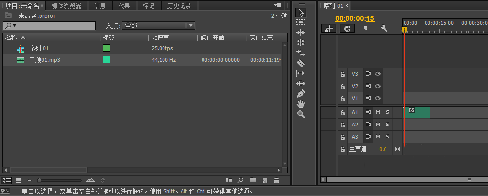 2、导入素材,插入到音频轨道1上。
