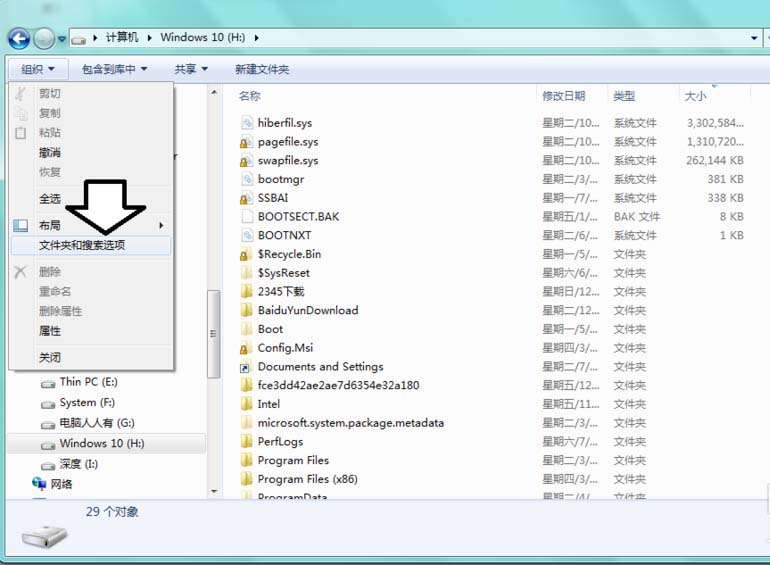 2、依照路径查看,虽然之前卸载了该软件,视频也只做好了,但是这些文件夹还在,如果看不到这些ME打头的文件,可能是系统文件被隐藏了,设置一下即可。文件夹左上方的组织菜单→文件夹和搜索选项。