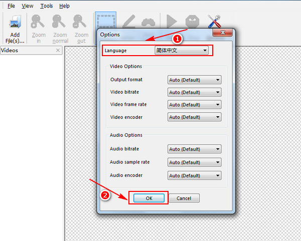 弹出一个新的对话框,在最上面的Language 那里选择语言,默认是English,点击旁边的倒三角下拉箭头选择简体中文就行了,选择之后点击“OK”按钮。现在我们的整个界面就都是中文显示的了。