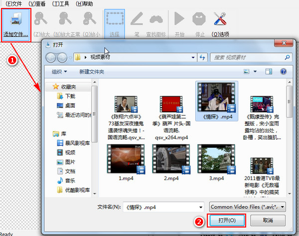 软件弄好后现在就可以进行视频去水印的操作了,总算是进去了正题哈。打开软件之后点击左上角的“添加文件”按钮,将要去掉水印的视频给添加进来。