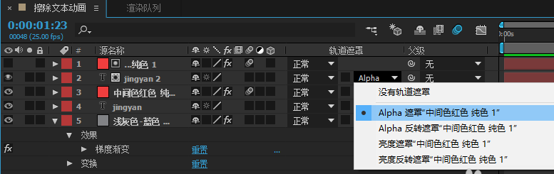 8、设置文字图层2的轨道遮罩;调整文字图层2的颜色为白色;