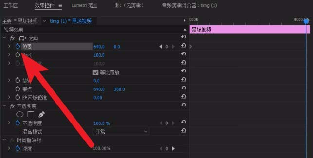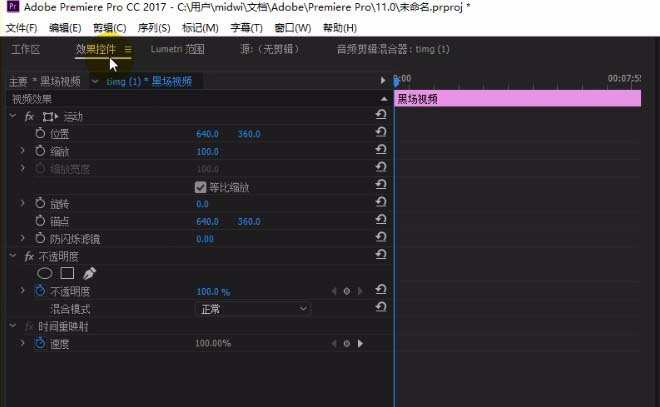 4、选择黑场视频的开头,并切换到效果控件面板中。