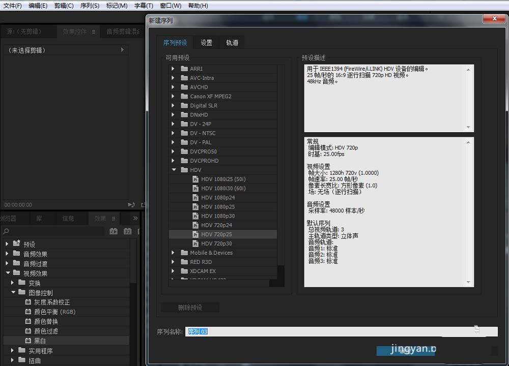 1、新建项目与序列。