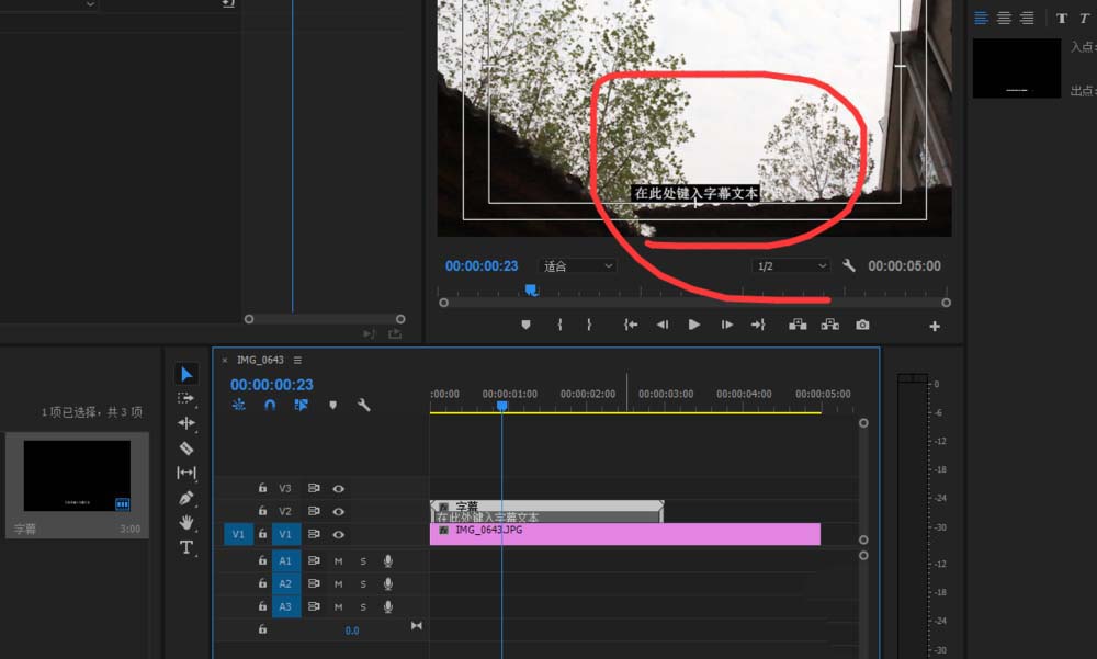 1、首先我们导入一个素材,方便我们添加字幕看到效果,