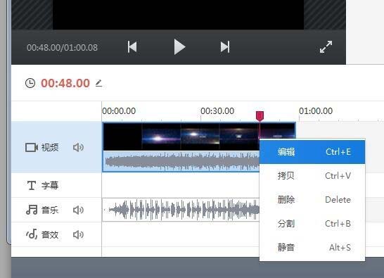 1、专业模式下,在视频上点击右键,选择点击“编辑”