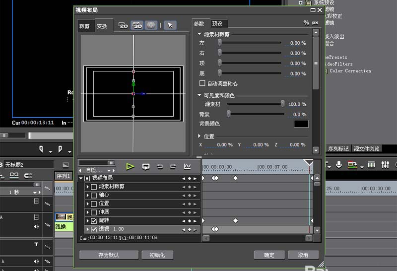 2、双击右下角的视频布局,调出视频布局对话框,切换到3d选项卡中。