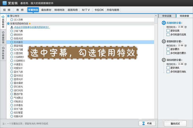 爱剪辑字幕文字怎么添加特效?
