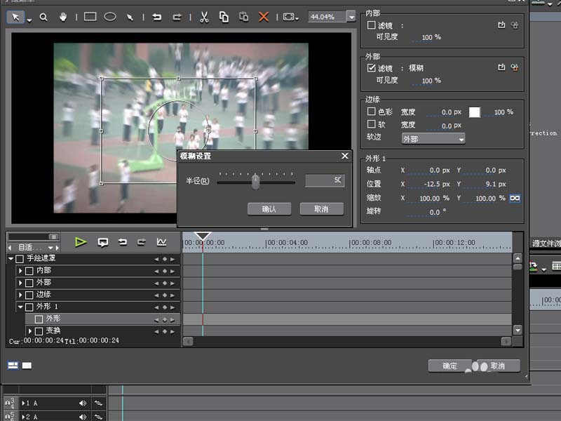 5、设置半径为50,点击确定按钮返回到手绘遮罩对话框,接着点击确定按钮。
