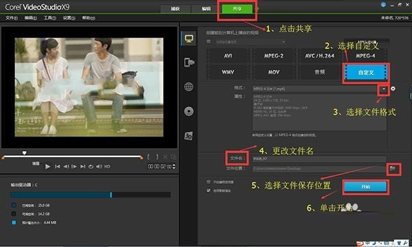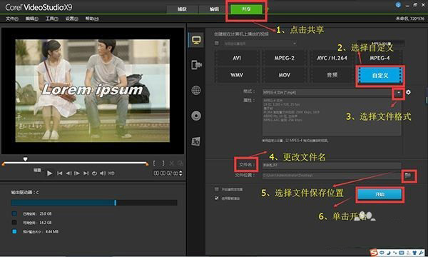 会声会影x10输出视频太大的解决方法: