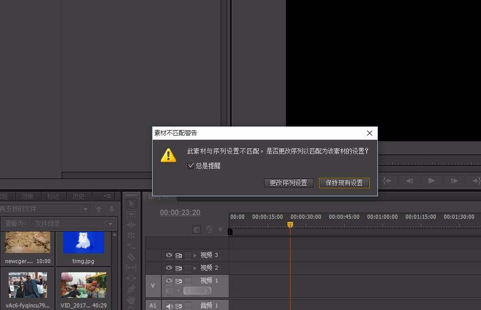 2、导入视频素材,如果有系列设置不匹配,可以选择“保持现有设置”