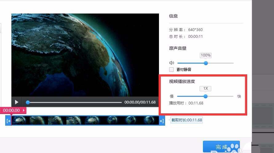 4、默认的是正常速度1X,我们可以向左右两个方向调整视频的速度