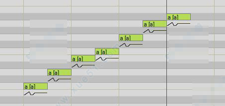 接下来,我们点击菜单栏下面的工具栏中的播放键,就可以播放出洛天依高低起伏不平的“a”的声音。我们可以通过看简谱的方法确定出节奏,可以通过音符的长短来确定是几分音符。
