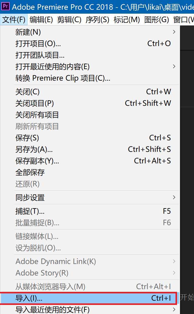 2、点击文件,然后在弹出菜单中选择到导入命令。