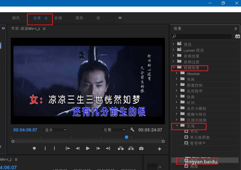 5、选中视频轨道,然后点击上方的效果,在右侧找到视频效果,生成下方的棋盘命令,进行双击。