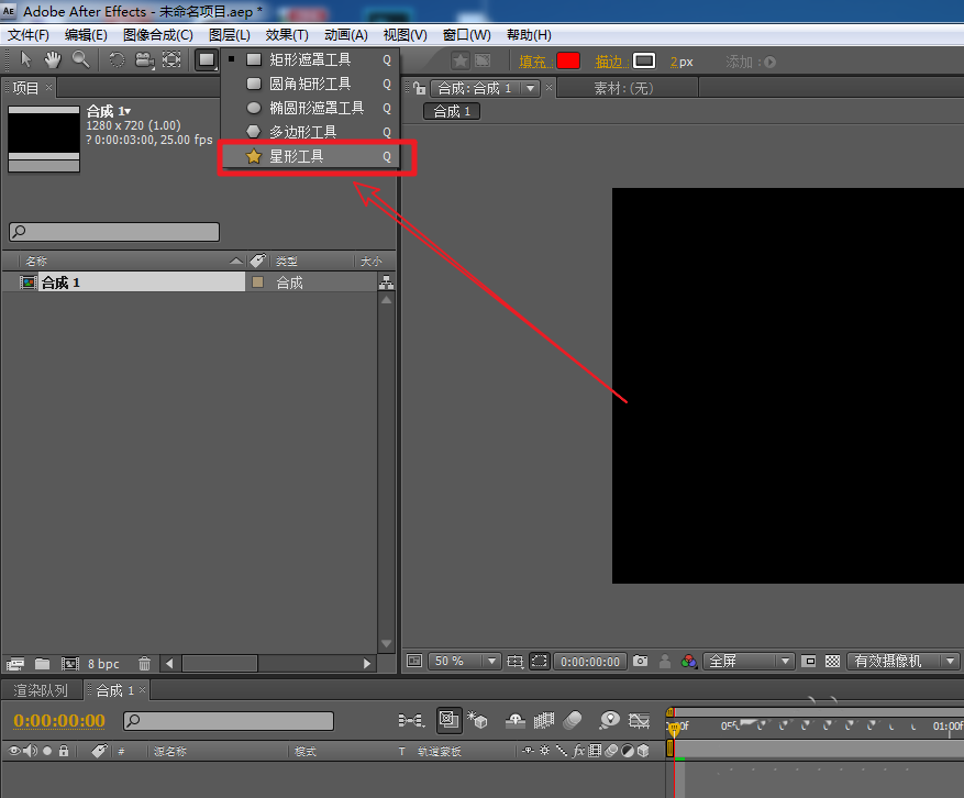 1、长按鼠标左键,在工具栏上选择星形工具。