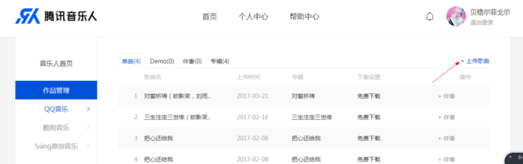 (2)拥有音乐人专属管理后台,自主发布和管理自己的专辑和歌曲,查看歌曲、粉丝、收入等详细数据;