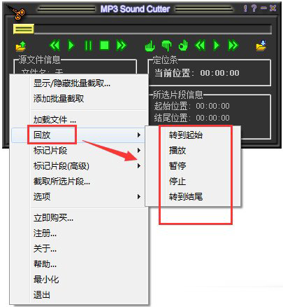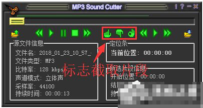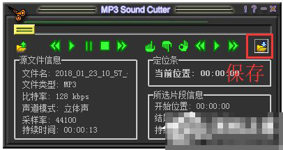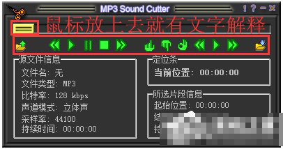 1、MP3 Sound Cutter使用很简单,大概就是加入——选取——输出这样的步骤,如果您不知道上面图标按钮的意思,将鼠标放在上面就可以看到文字解释