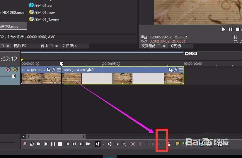 3、将时间轴上的视频显示比例稍微放大一下,让其适应时间轴。