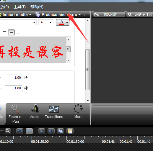 1、首先剪辑好视频材料之后,点击如下图所示的Produce and share