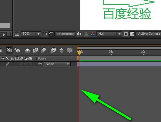 3、然后在AE时间线面板定位要开始放大的位置即可。