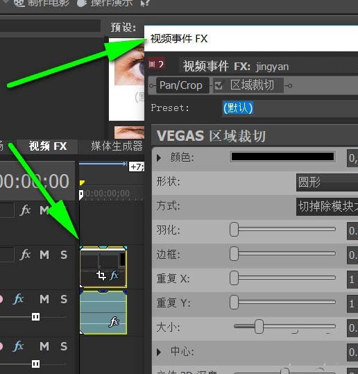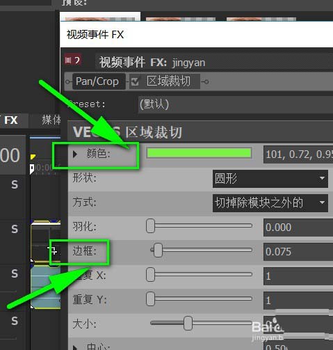 4、直接把刚才的裁切特效拖到视频片段上便会出现特效参数设置面板哦。