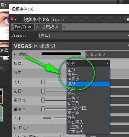 5、思考一下想要把视频画面剪裁成什么样的形状模样。思考好后即可选择形状啦哦。