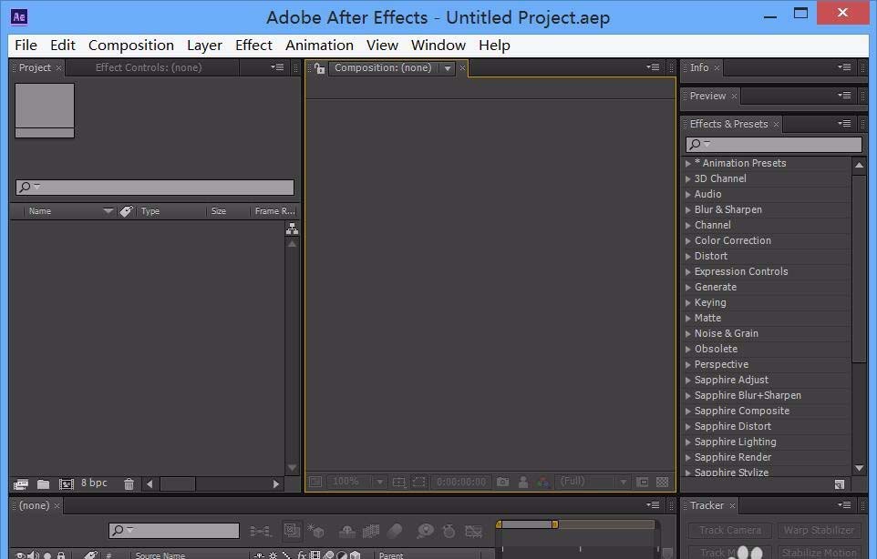 1、首先我们将AE这款软件打开,进入到AE的操作界面,如图所示: