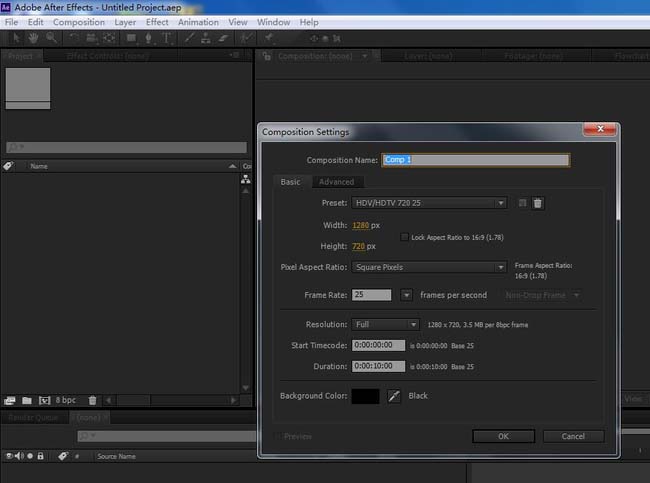 1、根据视频的编辑尺寸新建合适的AE源文件