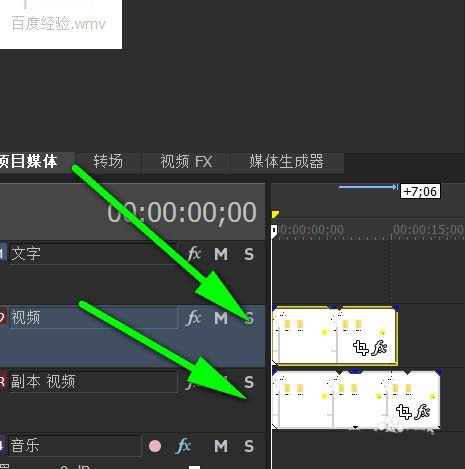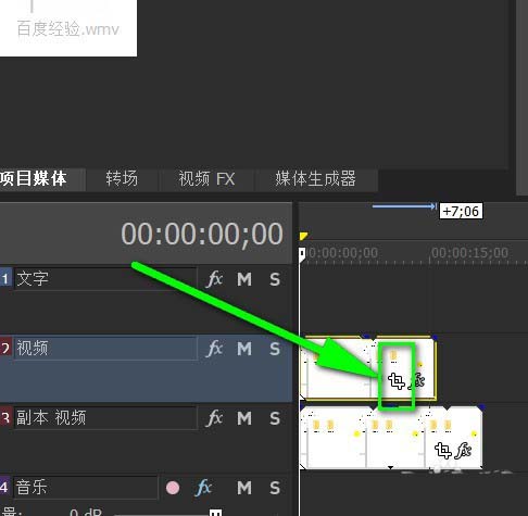 1、此处小编我就用两个视频在movie studio中演示画中画的例子。