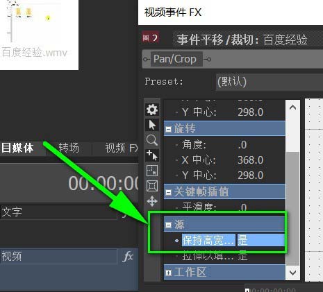 3、然后在“源”这里把“保持宽高”给设置成“是”即可。