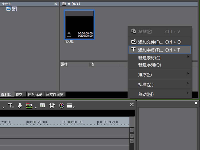 1、首先启动edius6,新建一工程,右键单击素材库,从下拉菜单中选择添加字幕选项。