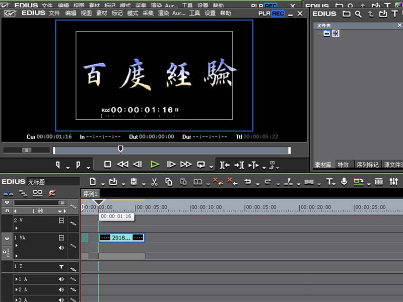 3、将字幕文件从素材库中拖拽到va轨道上,播放查看效果。